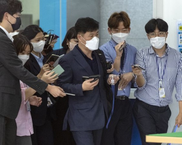 2021년 10월 7일 오후 김문기 성남도시개발공사 개발1처장이 조사를 받기 위해 서울 서초구 서울중앙지방검찰청에 들어서고 있다.