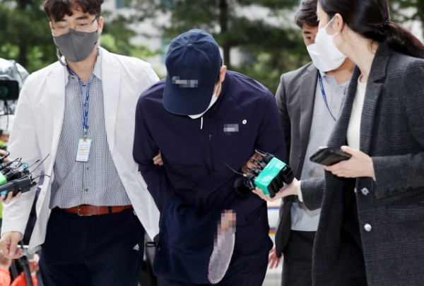 4세 딸의 손을 잡고 횡단보도를 건너던 어머니를 승용차로 치어 숨지게 한 50대 운전자 A씨가 지난 5월 17일 오후 구속 전 피의자 심문(영장실질심사)을 받기 위해 인천시 미추홀구 인천지방법원으로 들어서고 있다.