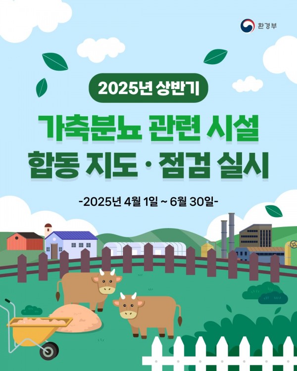 환경부(장관 김완섭)와 농림축산식품부(장관 송미령, 이하 농식품부)는 가축분뇨 적정 관리·처리를 통한 환경오염 방지를 위해 지자체 및 유역(지방)환경청 등과 합동으로