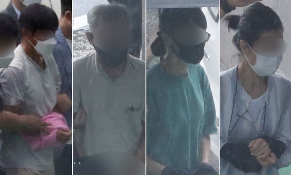 지난 2일 청주지법에서 북한의 지령을 받고 스텔스 전투기 도입 반대 활동을 했다는 의혹을 받는 자주통일 충북동지회 회원 4명이 구속 전 피의자 심문(영장실질심사)에 출석하고 있다.