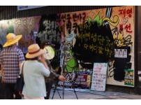 얼굴 사라진 ‘쥴리 벽화’…서점, 검은 페인트칠 유튜버 신고.
