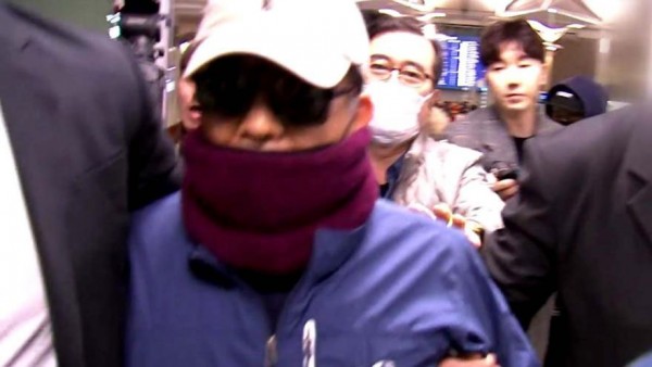 2019년 3월22일 선글라스와 목도리로 얼굴을 가린 채 인천공항에 나타난 김학의 전 차관.