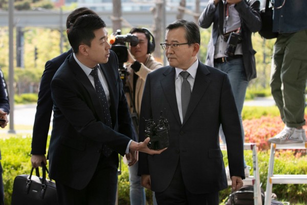 2019년 5월9일 김학의 전 법무부 차관(오른쪽)이 서울동부지방검찰청에 피의자 신분으로 출석하며 기자들의 질문을 받고 있다.
