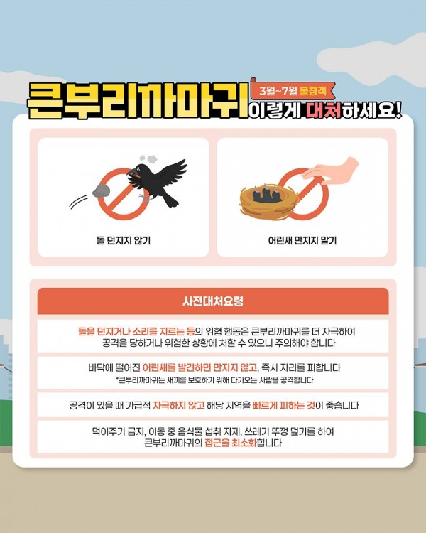 큰부리까마귀 둥지 근처 조심하세요… 안전 및 공존 위한 행동요령 안내