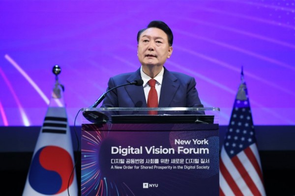1년 전 '뉴욕구상'으로 디지털 심화 시대의 새로운 질서 정립을 제시했던 윤 대통령은 이날 같은 장소인 뉴욕대에서 구체화된 디지털 규범 방향을 제시하면서 디지털 표준 우위 확보에 시동을 걸었다.