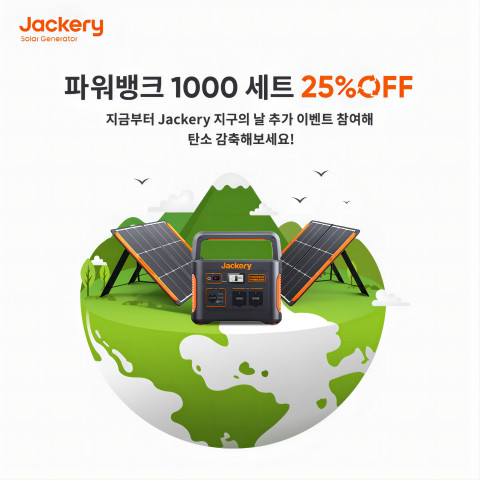 잭커리는 4월 22일부터 30일까지 9일간 잭커리 파워뱅크 1000을 15% 할인된 가격에 판매하며, 태양광 패널 세트와 함께 구매할 경우 최대 25%의 할인 혜택을 제공한다.