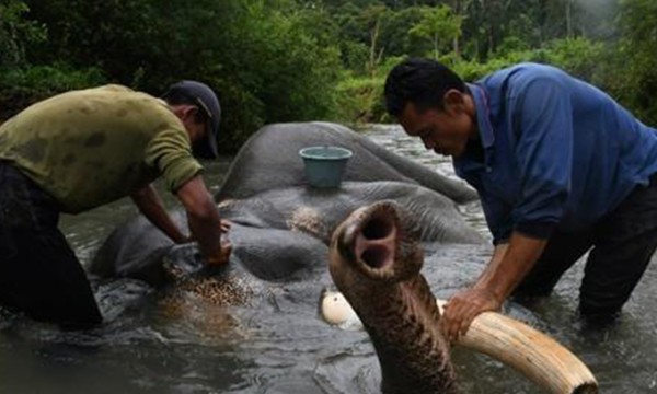 인도네시아에서 상아를 노리고 멸종위기종인 수마트라 코끼리 머리를 자른 일당이 체포됐다.