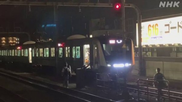 흉기난동이 벌어진 도쿄 세타가야(世田谷) 구간을 달리던 오다큐(小田急)선 전동차가 정차해있는 모습/NHK