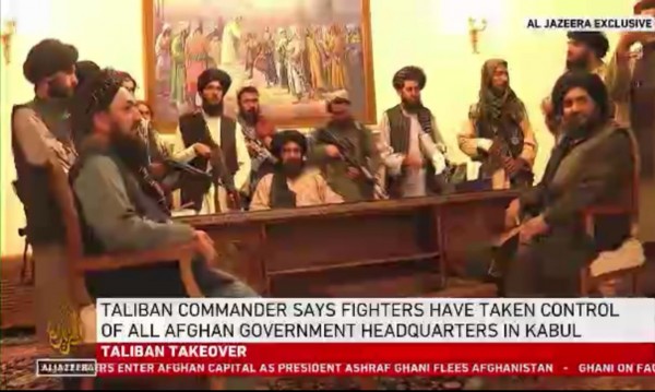 아프간 수도 카불의 대통령궁을 장악한 탈레반 (출처:알자지라 방송, AP)
