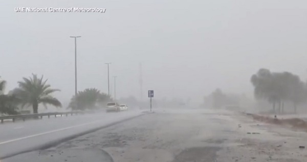 아랍에미리트(UAE) 두바이에 내린 인공 비. /사진=UAE 기상청 유튜브 영상 캡처.
