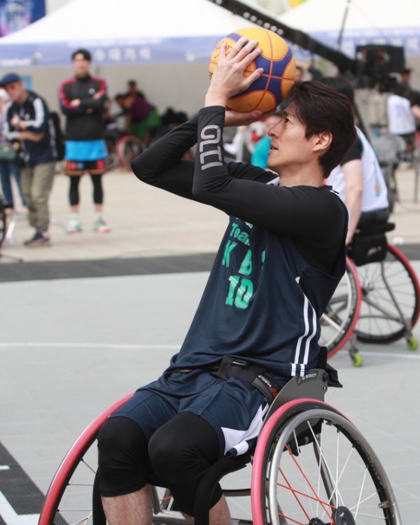 22일 올림픽공원 평화의문에서 진행된 2023 KBS배 어울림픽 농구대회에 참가한 배우 박재민(TEAM KBS)의 경기 모습. 사진제공 | 대한장애인체육회