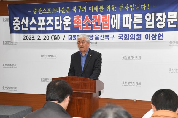 더불어민주당 이상헌 의원(울산 북구)은 20일 울산시의회 프레스센터에서 기자회견을 열고 "중산스포츠타운 조성 사업을 '끼워 맞추기식' 행정으로 추진하면 안된다"고 밝혔다.