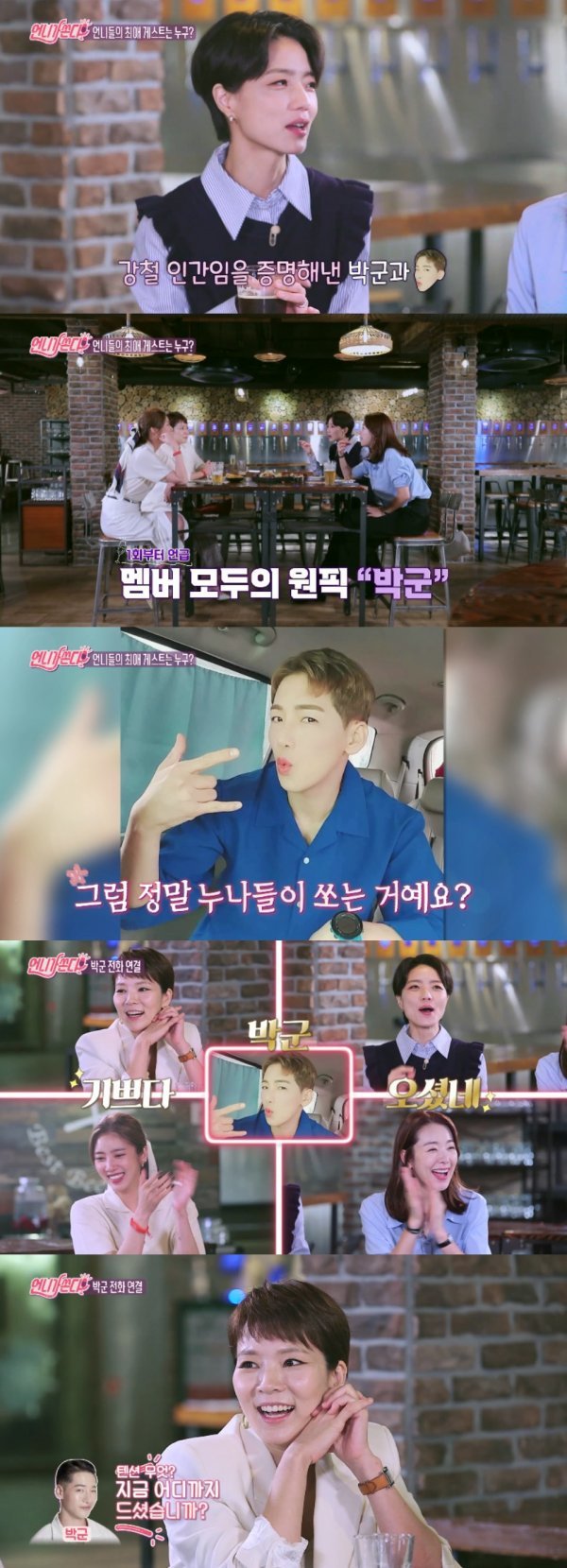 이에 안영미는 최근 박군과의 통화 내용을 공개하며 "'그럼 정말 누나들이 쏘는 것이냐'고 묻더라. 술도 잘 마시고 주종도 안 가린다고 했다"고 덧붙여 박군의 출연을 기대하게 만들었다.