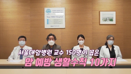 그 두 번째로 암 예방 생활수칙 10가지 중 나머지 5가지를 소개한다. 대표 답변자로는 김동완 서울대암병원 혈액종양내과 교수, 이경실 서울대암병원 가정의학과 교수, 이남준 서울대암병원 간담췌외과 교수가 참여했다.