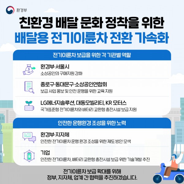 환경부(장관 김완섭)와 서울특별시(시장 오세훈)는 소상공인의 친환경 배송 촉진을 위한 ‘소상공인 전기이륜차 보급 확대