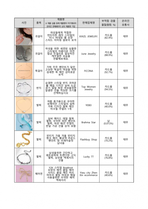 생활화학제품, 금속장신구 등 558개 해외직구 제품 안전성 조사 결과 공개