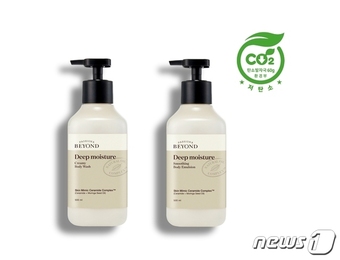 이번에 인증 받은 저탄소 제품은 '비욘드 딥 모이스처 크리미 바디워시'와 '비욘드 딥 모이스처 스무딩 바디 에멀전' 2종이다. 두 제품의 용기는 재활용 플라스틱(PCR)이 98.5% 들어간 페트(PET)로 제작됐다.