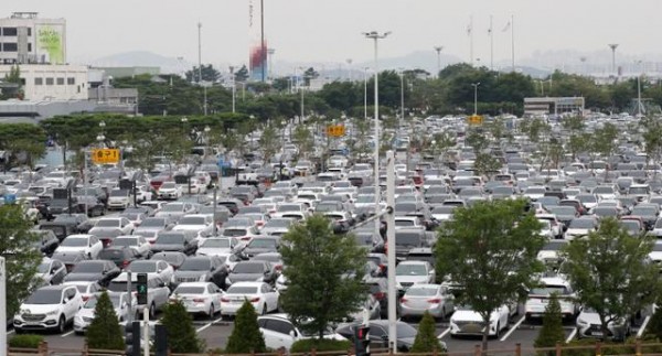 제76주년 광복절 연휴를 앞둔 13일 오전 서울 강서구 김포공항 국내선 청사 주차장에 이용객들의 차량들이 주차되어 있다.