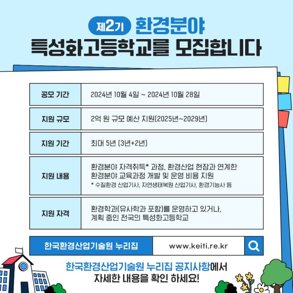 * 한국환경산업기술원 (알림/지식마당 - 공지/공고 - 환경분야 특성화고등학교 사업공고)
