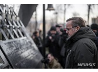 유로마이단 희생자 추모비 참배하는 독일 국방장관